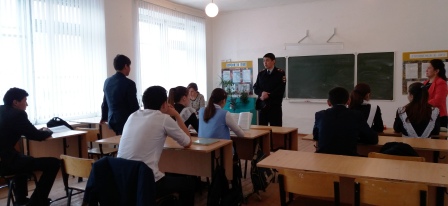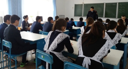 21.04.2018 в школе была проведена встреча с начальником отдела уголовного розыска Баймакского РОВД майором полиции Байзигитовым Ф.Н. В ходе встречи были организованы беседы с обучающимися с целью предотвращения аутоагрессивного поведения несовершеннолетних.